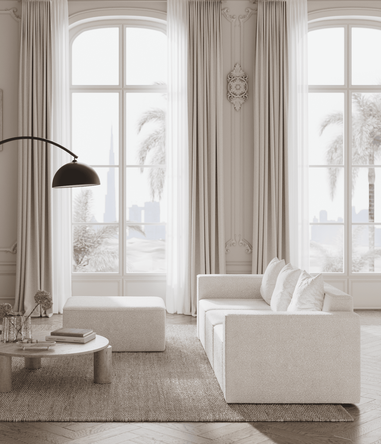 - Luxurious Boucle Fabric: Soft, textured upholstery that adds warmth and sophistication.
