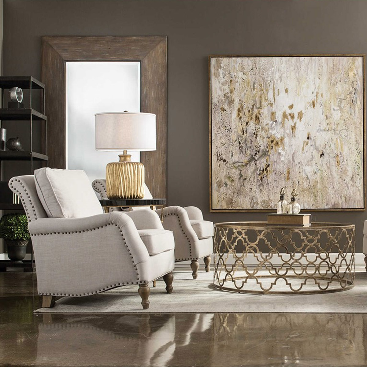 The Kivona Dove Nailhead Armchair combines timeless elegance with contemporary flair, making it an exquisite addition to any living space. Featuring elegant nailhead trim and soft upholstery, this armchair offers both style and comfort. Its sophisticated design makes it perfect for enhancing your decor, whether in a living room, office, or reading nook.