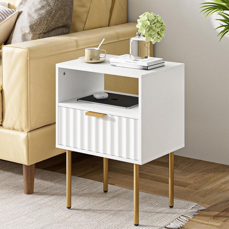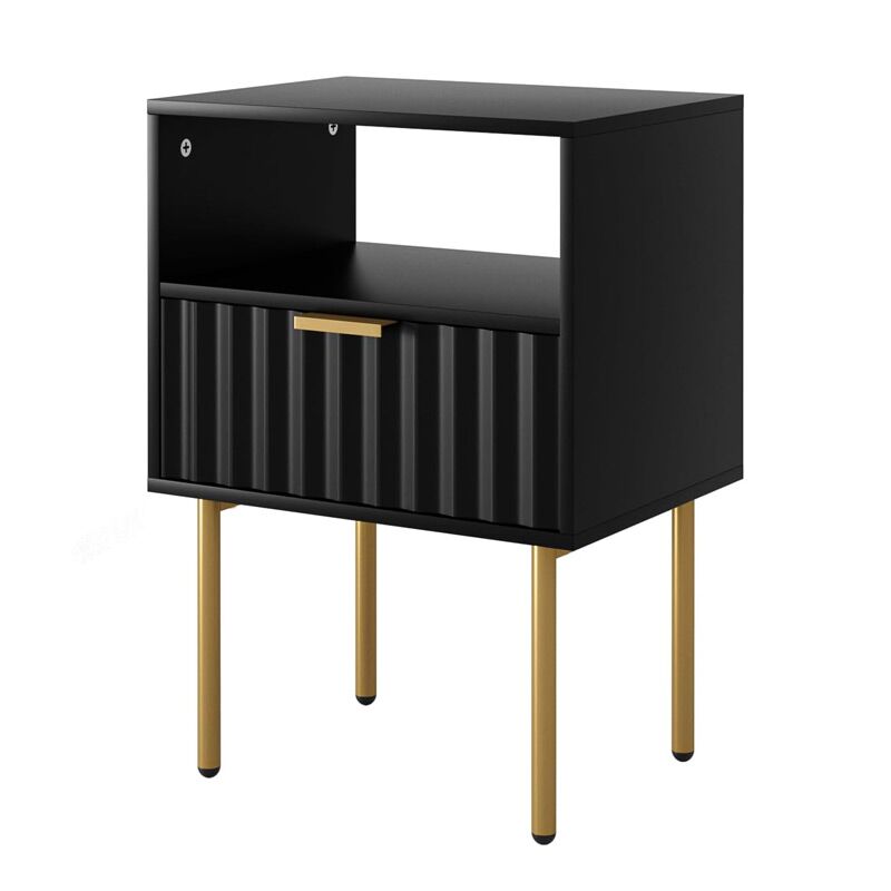 Elevate your bedroom decor with the Kivona Fluted Nightstand with Gold Legs, a perfect blend of elegance and modern design. This stunning nightstand features a unique fluted texture that adds depth and character to any space, while the luxurious gold legs provide a striking contrast, enhancing its sophisticated appeal. The spacious top surface is ideal for displaying lamps, books, or personal items, and the convenient drawer offers hidden storage for essentials, keeping your bedside organized. Crafted from high quality materials, the Kivona Fluted Nightstand combines style and functionality, making it a chic addition to your home.