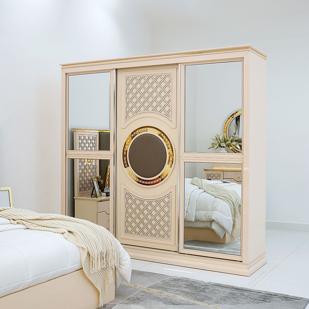 Made with care and attention to detail, the Grand Haven Bedroom Set uses high-quality materials that last while giving your room a stylish touch. The star of the set is the beautiful bed frame, which is not only strong but also looks amazing. The set also includes nightstands, a large wardrobe, and a useful dresser, giving you plenty of storage space to keep your bedroom organized.