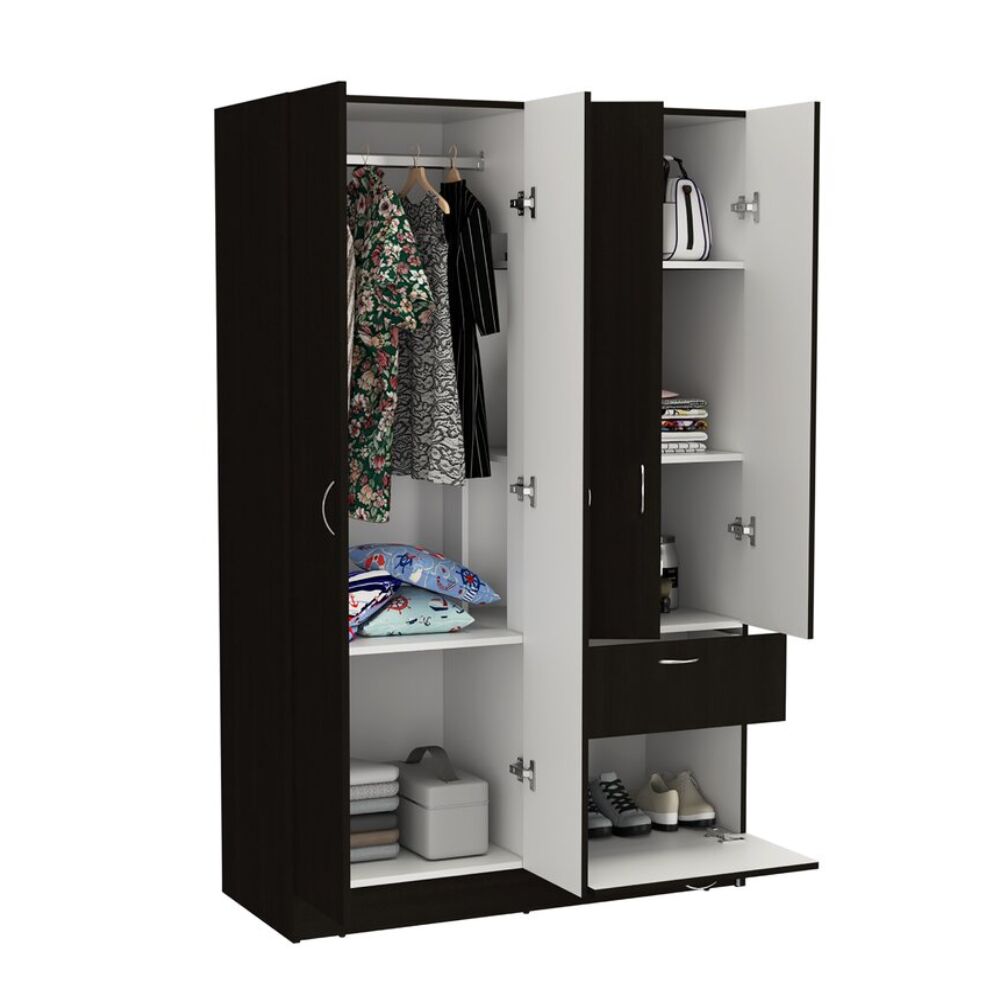 Spacious Storage: Includes multiple shelves and a hanging rod for versatile storage options, accommodating clothing, shoes, and accessories.