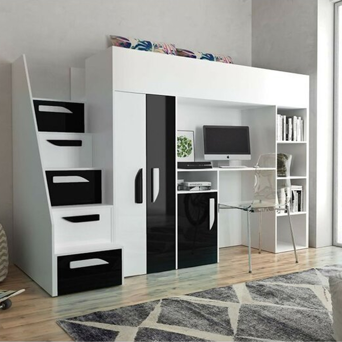 1. Staircase with Built-In Storage: Each step includes storage compartments, providing convenient space for toys, books, or clothes, maximizing functionality.