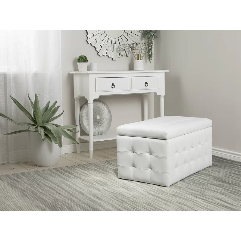 The Kivona Roseleaf Faux Leather Tufted Ottoman combines classic charm with modern versatility, adding a refined touch to any room. Upholstered in high-quality faux leather with elegant tufting, this ottoman offers both style and durability. Whether used as a footrest, extra seating, or as a chic coffee table alternative with a tray, the Roseleaf Ottoman provides a stylish and functional addition to your space. Its robust construction and plush cushioning ensure comfort and longevity, making it an ideal piece for any living room, bedroom, or office.