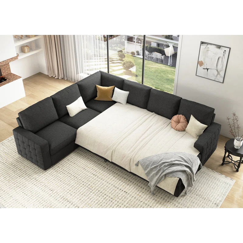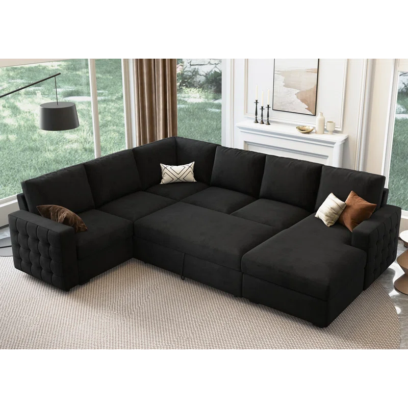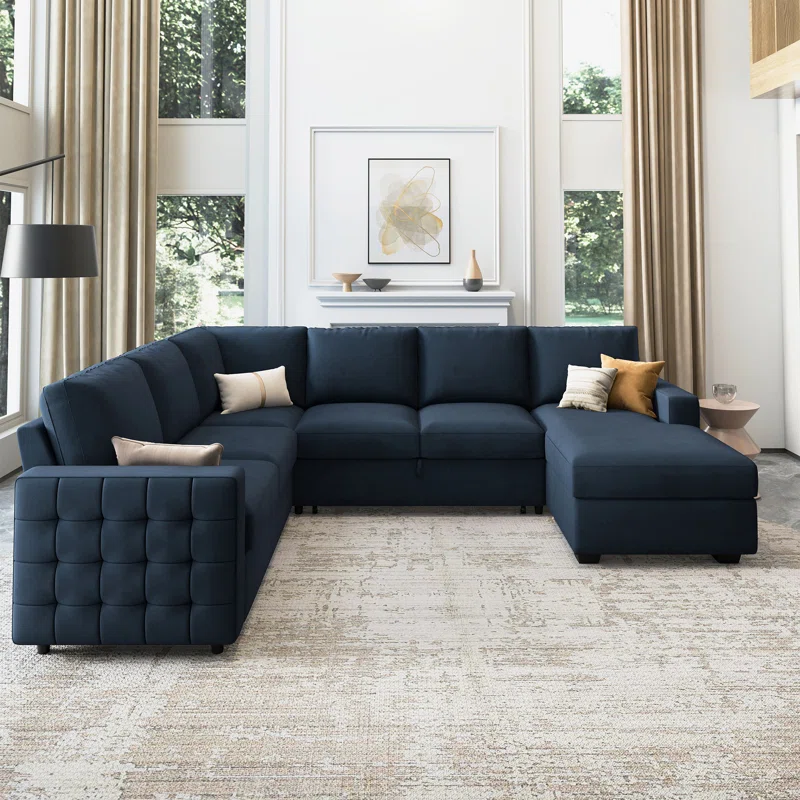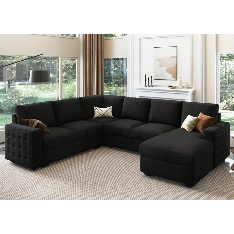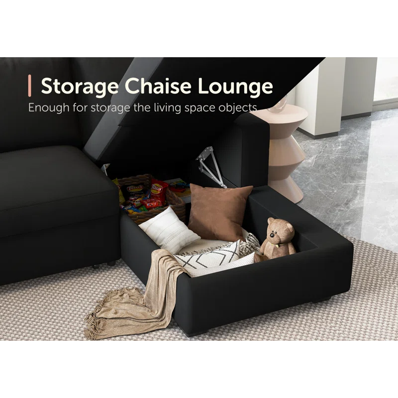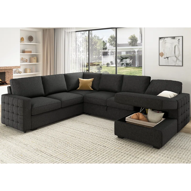 Maximize your living space with the kivona U-Shaped Sleeper Sectional Sofa with Storage Chaise. This versatile sectional not only provides ample seating for family and friends but also easily converts into a comfortable sleeper bed, making it perfect for overnight guests. The spacious chaise includes built-in storage, allowing you to keep blankets, pillows, or other essentials tucked away and organized. Upholstered in soft, durable fabric, this sectional combines style and functionality, making it an ideal addition to any modern home.