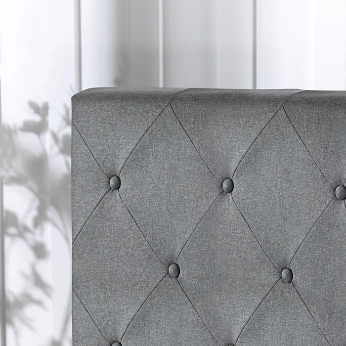 Looking to refresh your master suite or prepare the guest room for visitors? The Ridley Upholstered Bed Frame is the perfect starting point for your bedroom upgrade. This elegant bed frame not only provides a comfortable place to rest but also elevates the style of your space. Constructed from solid rubberwood, it boasts a sleek, low profile design that complements modern décor. The button-detailed headboard, upholstered in a chic dark grey polyester fabric, adds a touch of sophistication to any bedroom.