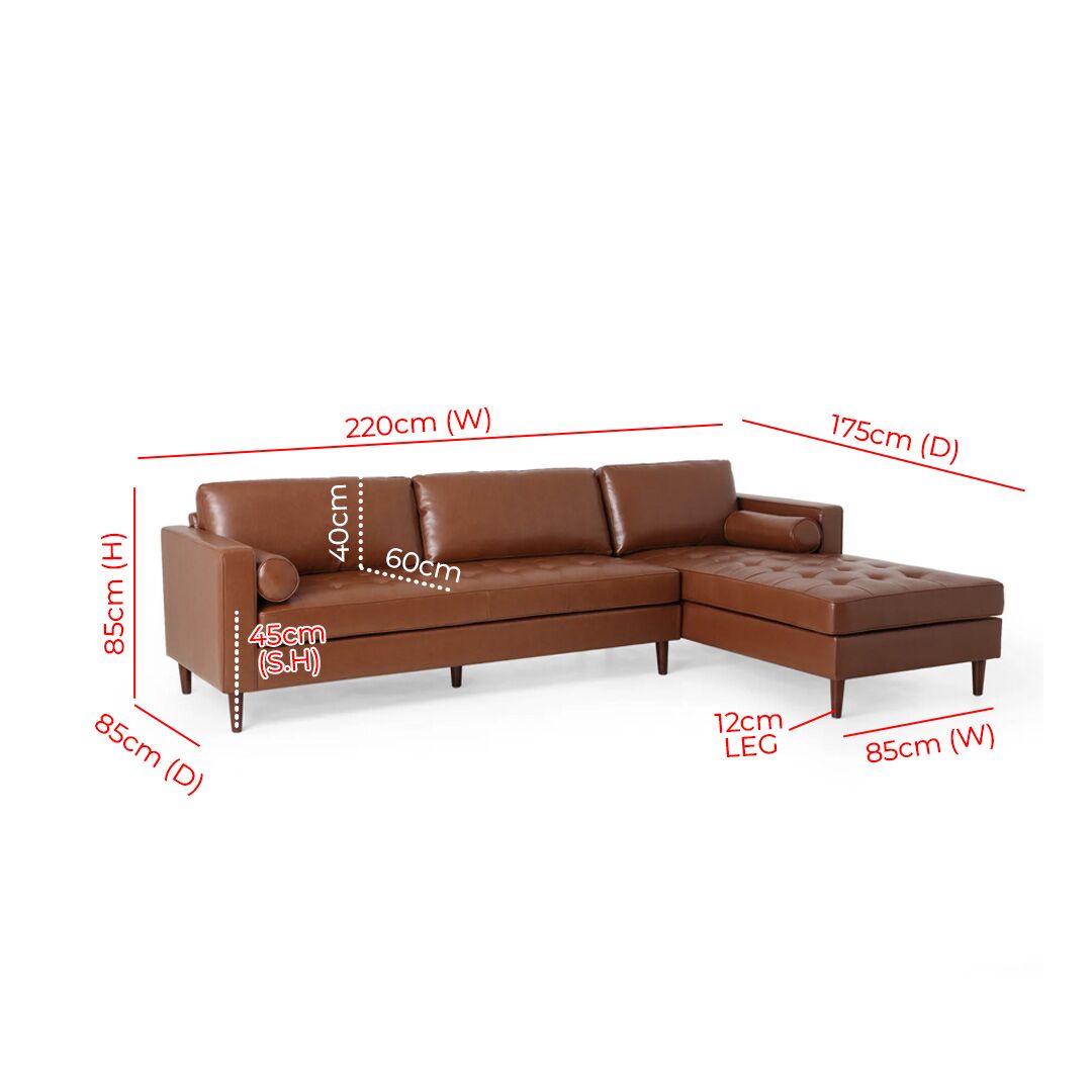 Key Features Of Sleek Luxe Leather Chaise Sofa: